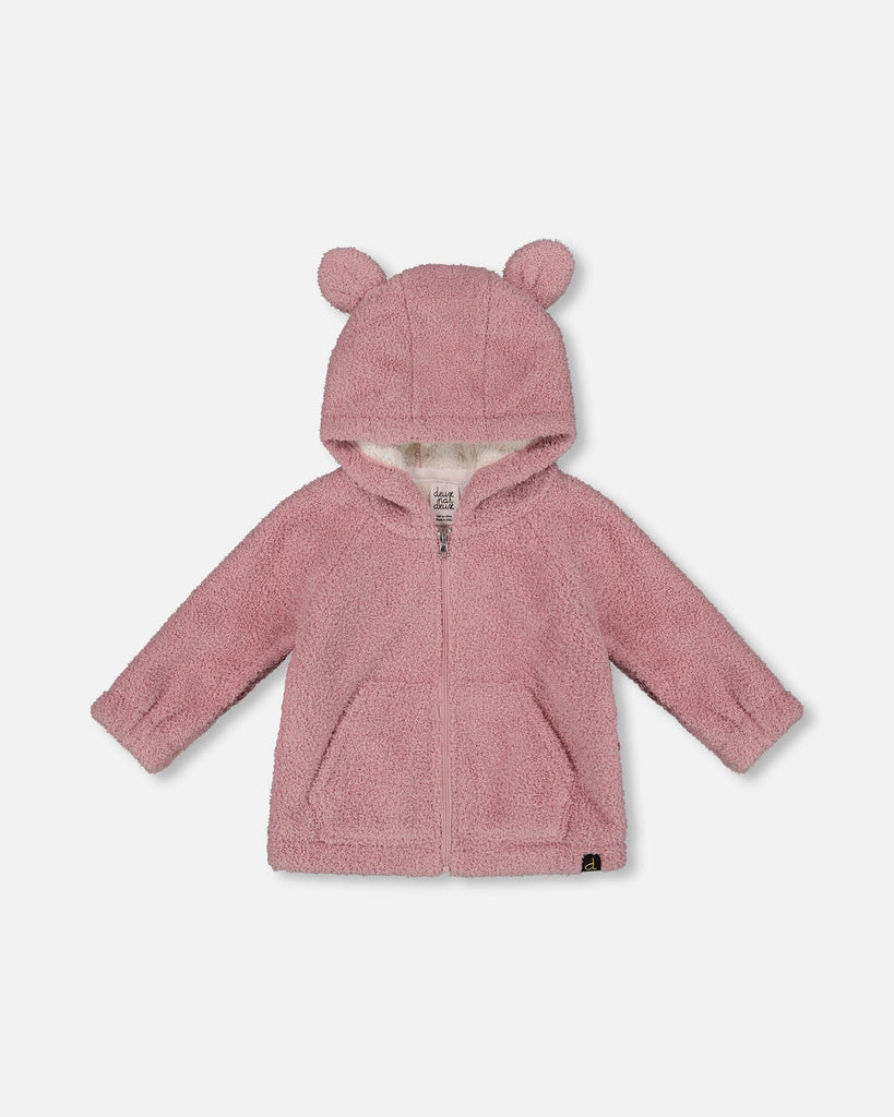 Get the softest comfort with our Hooded Full Zip Plush Jacket in Dusty Pink! This snuggly coat, made from irresistibly soft plush, is topped with an adorable hood featuring playful cat ears that will make everyone smile. Two cozy pockets are perfect for tiny treasures, and the full-length zipper makes dressing a breeze. Whether it’s for a fun adventure or a cozy afternoon, this jacket keeps your little explorer warm, stylish, and ready for whatever the day brings!