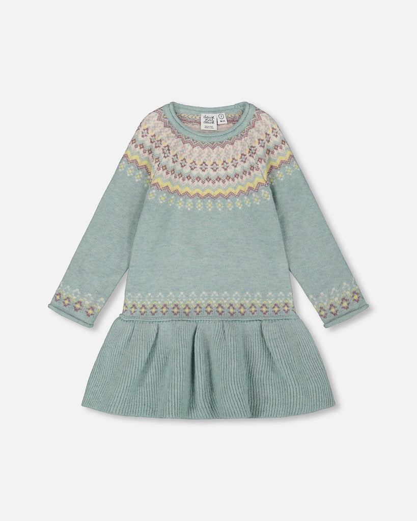 Jacquard Sweater Dress With Ribbed Skirt Jade Green