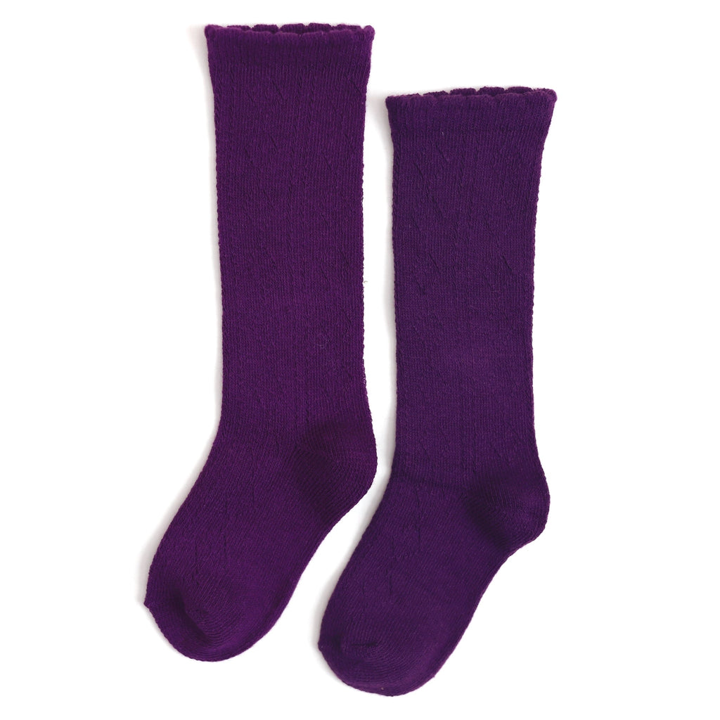 Machine wash cold with like colors. Tumble dry low or lay flat to dry. Scalloped Fancy socks do tend to run shorter than most of our knee high socks. 79% cotton / 19% polyester / 2% spandex Imported.